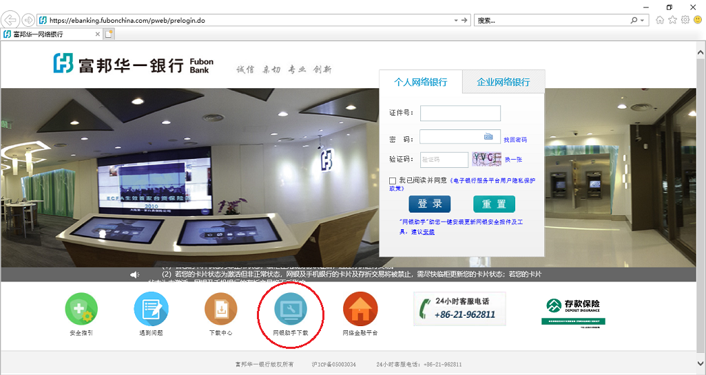 尊敬的个人客户: 1、为了向您提供更安全的交易环境,我行个人网上银行将不再支持Windows XP/Vista系统及其更早版本,如有需要请您及时升级系统。建议使用Windows7 SP2及以上系统、IE8-IE11浏览器操作我行个人网上银行。由此给您带来的不便,敬请谅解。 2、应监管要求,我行于2018年1月1日起对个人客户U-Key证书进行国密算法升级改造,以进一步提升用户使用的安全性;为了您更安全的使用电子银行服务,请于2018年1月2日后到我行柜面更新您的U-Key证书。详询24小时客服热线+86(21)962811。 3、 为给您提供更安全的金融交易环境,自2017年10月16日起,我行将针对同时拥有卡片及存折的客户做如下业务调整: (1)若您的卡片状态为非正常状态,临柜在完成身份认证后,通过存折进行交易。 (2)若您的卡片状态为激活但非正常状态,网银及手机银行的卡片及存折交易将被禁止,需尽快临柜更新您的卡片状态;若您的卡片状态为未激活,网银及手机银行的存折交易将不受影响。 (3)若您的卡片状态不正常,网银、手机银行、微信银行仅允许进行本人名下的存折交易,卡片交易将被禁止。 具体内容,可详询24小时客服热线+86(21)962811 4、自2017年08月15日起我行个人外币汇款手续费标准进行调整,详情请参见我行官网《富邦华一银行服务价目表》www.fubonchina.com,特此通知! 5、我行已于2018年1月1日提供网络银行的国密证书升级服务,在登录网银时如遇到提示"输入控件错误",如下图,建议您按以下步骤解决: ![]() 解决方法: a.确保电脑在拥有管理员权限前提下在我行网银登录页面下载网银助手至本地。 ![]() b.在网银助手开始运行时,关闭所有浏览器。 c.按照网银助手安装向导开始安装步骤。 ![]() ![]() d.安装完成以后点击"立即体验",开始系统检测。 ![]() e.检测完成之后如下图,点击"一键修复"。 ![]() f.网银助手修复之后到达以下画面,如只提示以下警告项,而没有其他错误项,可以继续。 ![]() g.请客户点击网银助手上的"网银登陆"按钮,再点击“富邦华一银行首页”,再次尝试登陆。 ![]() h.一般情况下按照以上方式即可恢复系统设置,如有其他问题请联系我行客服。 |